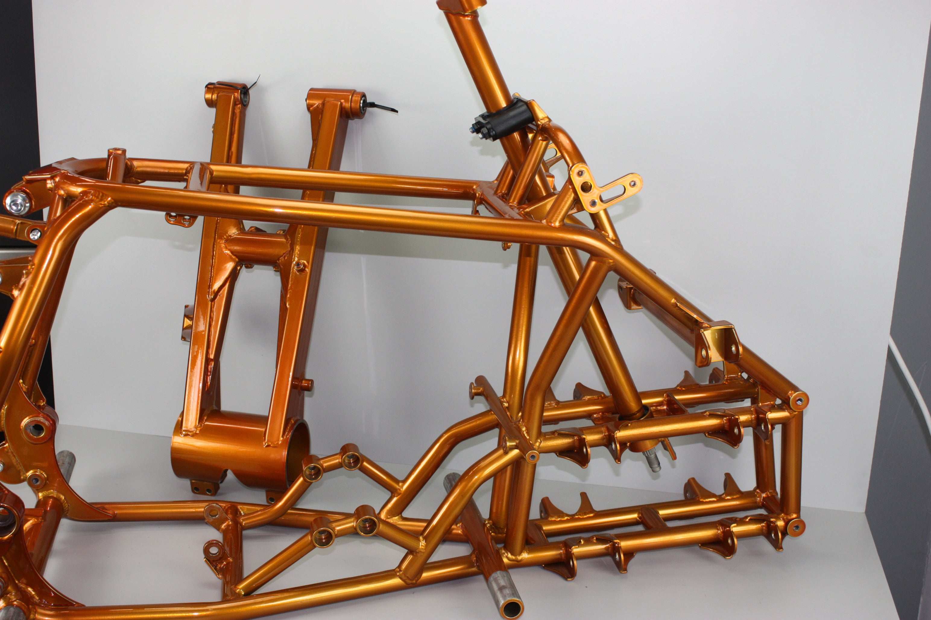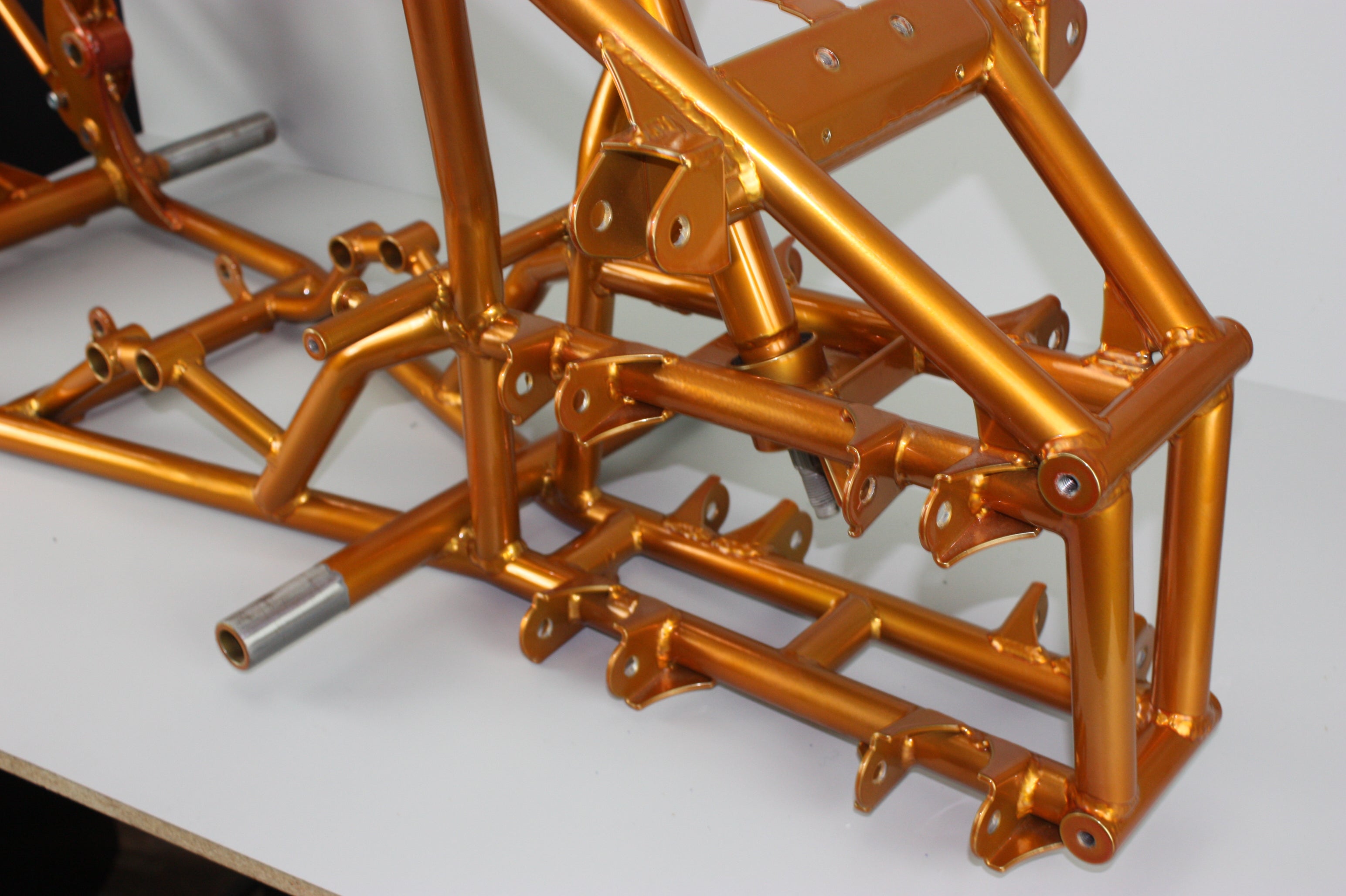 Choose your powder coat color, your engine platform, and your riding style — we’ll handle the rest. Our team can modify the frame to accommodate nearly any motor: 2 stroke? 4 stroke? Electric? We are equipped to handle any swap, ensuring a perfect fit and finish every time.