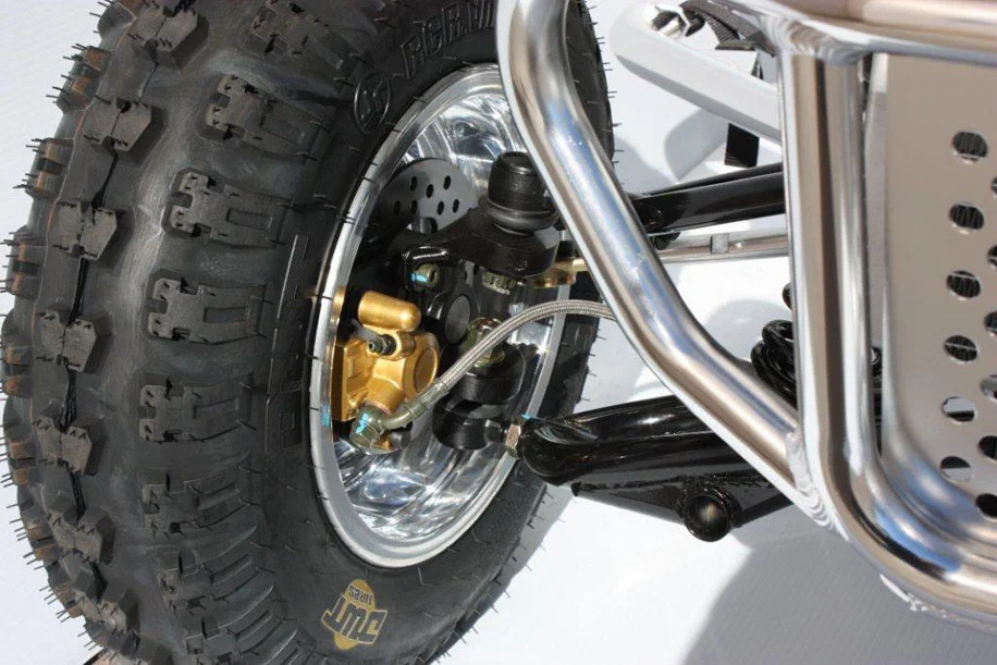 FRONT SUSPENSION: DUAL A-ARMS W/ 14 1/2" ADJUSTABLE GAS SHOCKS